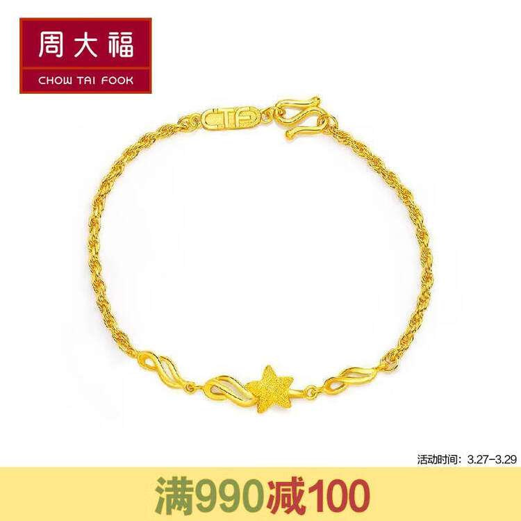 周大福(CHOW TAI FOOK)礼物 婚嫁时尚星愿足金黄金手链 F164718 108 约6克 17.5cm